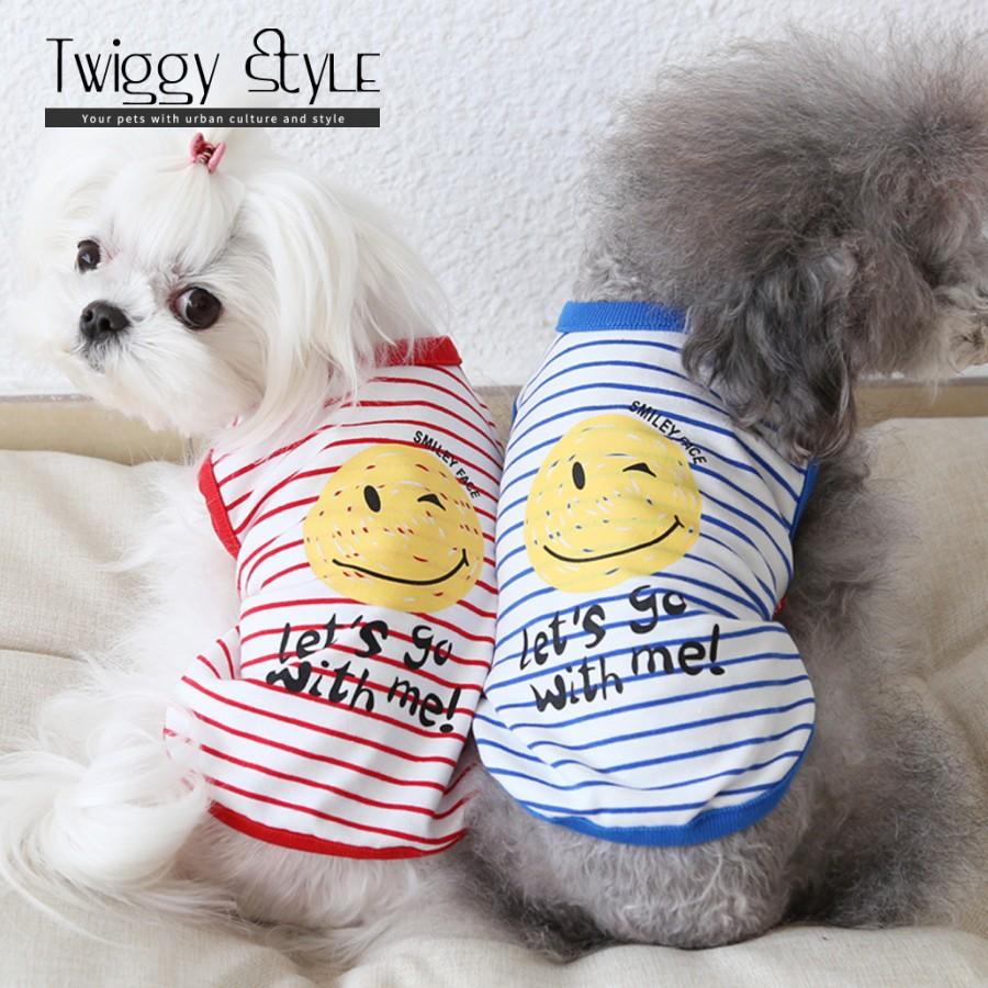 送料無料 春 夏 サイズ交換対応 犬服 ドッグウェア 春 夏 可愛い おしゃれ 犬用タンクトップ スマイルイラストのボーダータンク C Twiggy Style 通販 Yahoo ショッピング